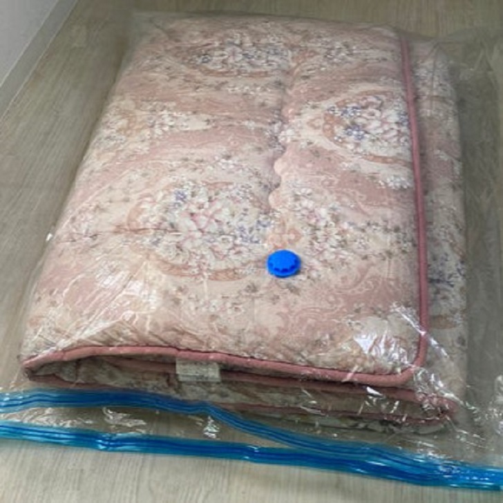 - 圧縮後は長辺を二つ折りにし、体重をかけて折ると収まりが良くなります。