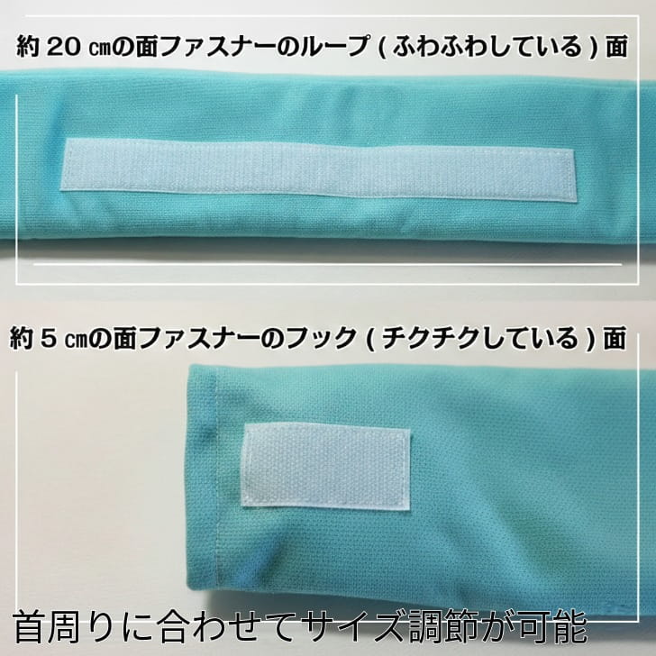 | ウレタン(長さ50cm、高さ8cm、厚み1cm)を綿でくるみ、さらにガーゼで包んだものを手縫いして本体を作製しています。 | |